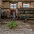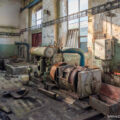 Wśród zarośniętych torowisk, gdzie rdzewieją resztki semaforów, kryje się niewielka elektrownia — serce dawno zamkniętych kolejowych zakładów naprawczych. Wnętrze pachnie wilgocią, a na ścianie wciąż wisi wyblakły kalendarz z 2001 roku. Rośliny otaczają ciężkie metalowe maszyny. Stary silnik stoi niczym relikwia po czasach gdy tętniło tu życie.
