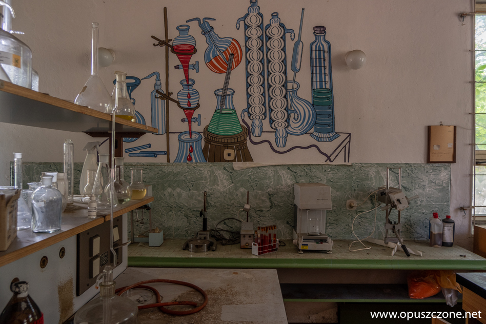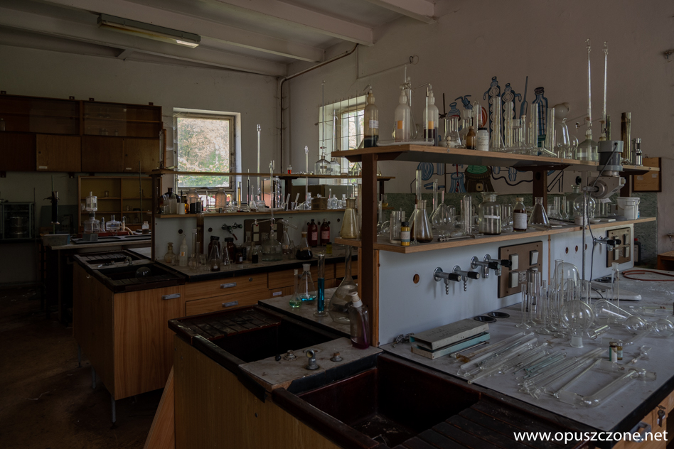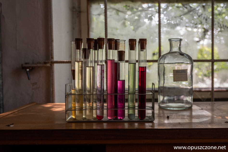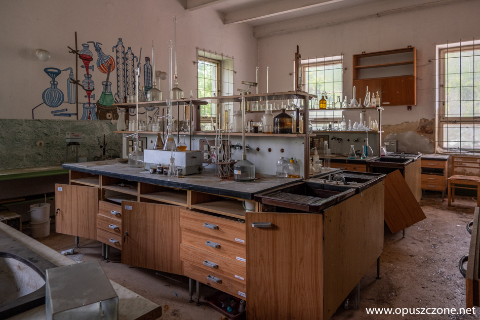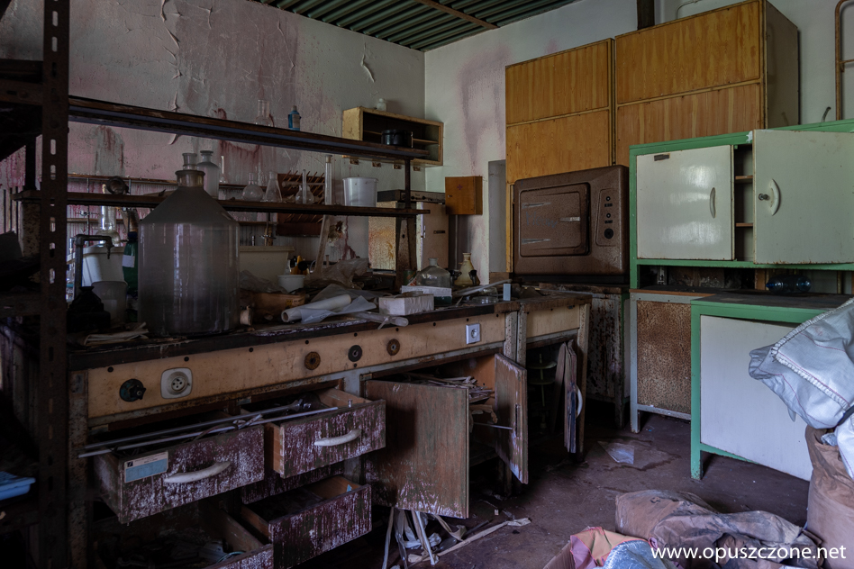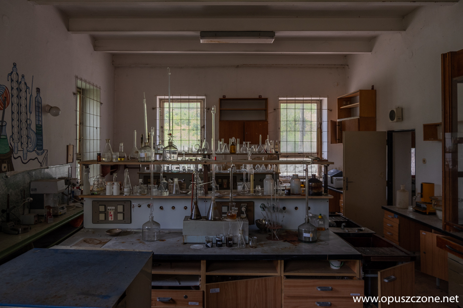 Fabryka powstała w 1933 roku w niewielkiej miejscowości. Przez dziesiątki lat zajmowano się tutaj głównie produkcją olejów technicznych, odtłuszczaczy, rozpuszczalników i środków chemicznych dla przemysłu tekstylnego. Teren zakładu przedziela górski strumień. W 2010 roku podczas powodzi wystąpił on z brzegów i zalał teren fabryki, doprowadzając do rozlania chemikaliów po okolicy i finalnie do zamknięcia fabryki. Szum przepływającej wody do dzisiaj dostaje się przez okno do wnętrza urokliwego laboratorium przypominając przyczynę upadku miejsca kilkanaście lat temu.