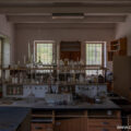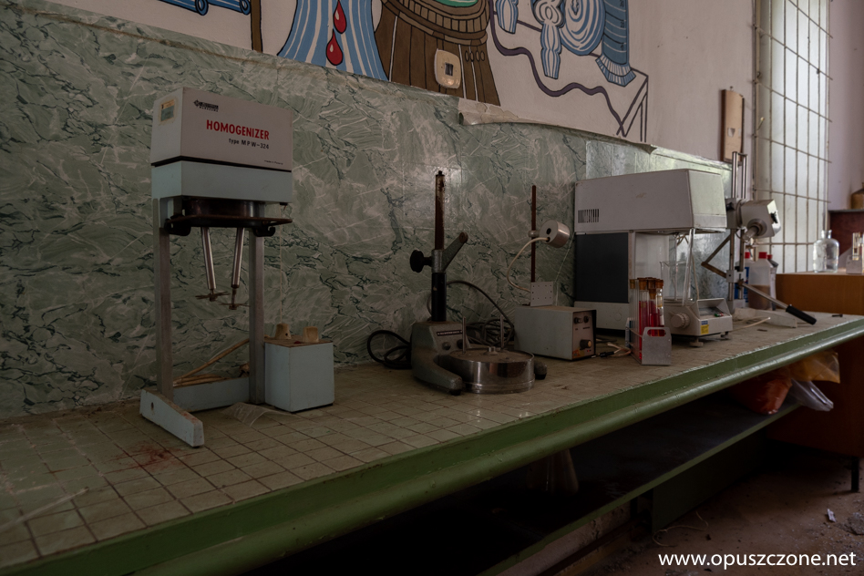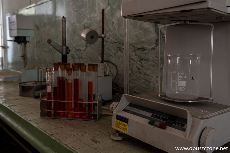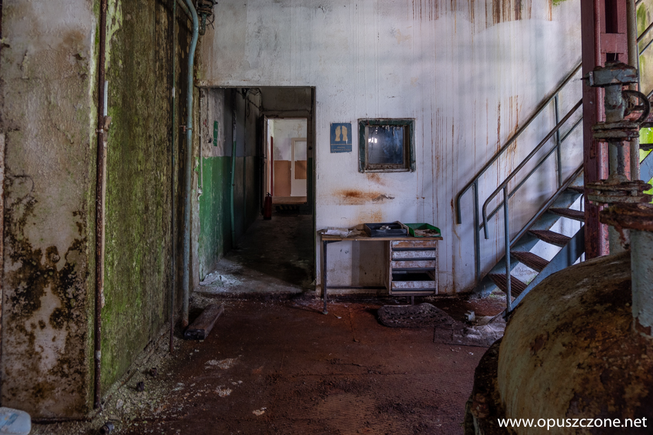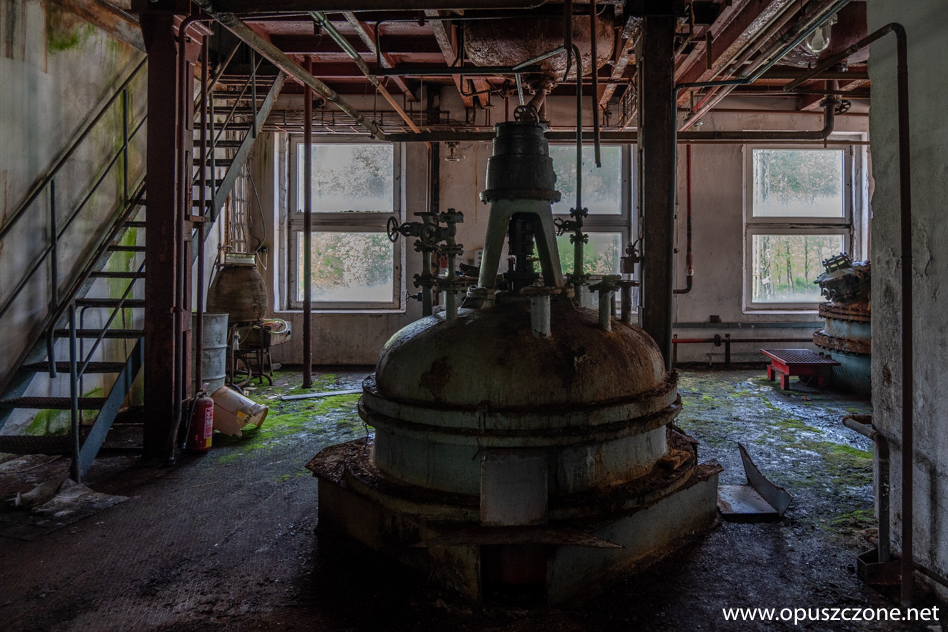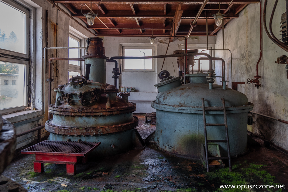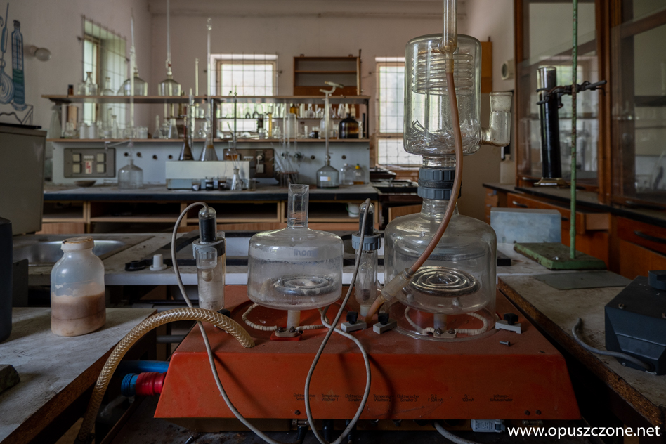 Fabryka powstała w 1933 roku w niewielkiej miejscowości. Przez dziesiątki lat zajmowano się tutaj głównie produkcją olejów technicznych, odtłuszczaczy, rozpuszczalników i środków chemicznych dla przemysłu tekstylnego. Teren zakładu przedziela górski strumień. W 2010 roku podczas powodzi wystąpił on z brzegów i zalał teren fabryki, doprowadzając do rozlania chemikaliów po okolicy i finalnie do zamknięcia fabryki. Szum przepływającej wody do dzisiaj dostaje się przez okno do wnętrza urokliwego laboratorium przypominając przyczynę upadku miejsca kilkanaście lat temu.