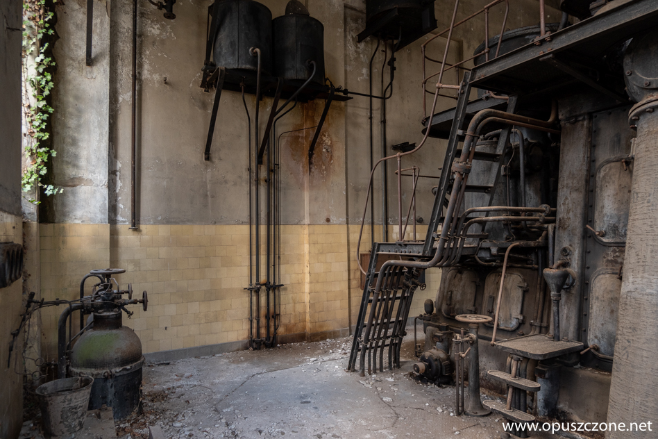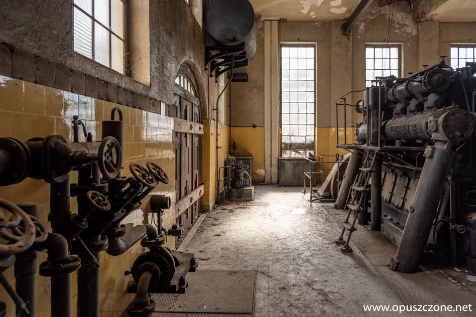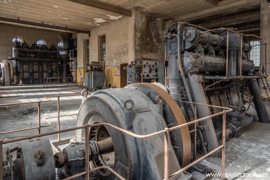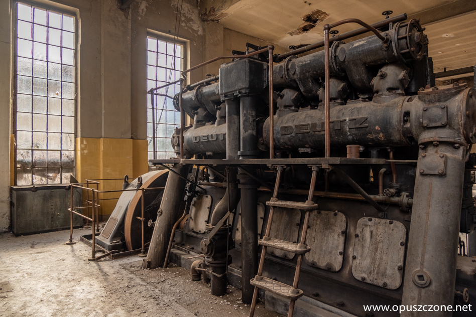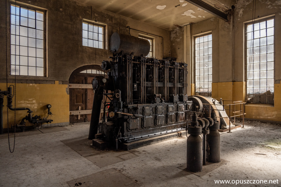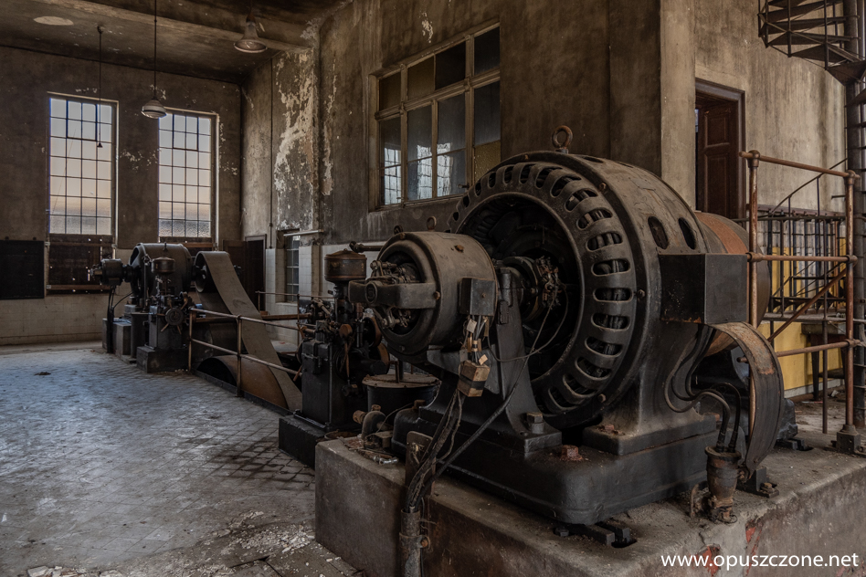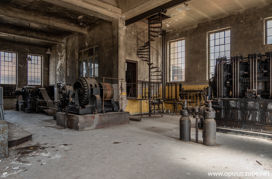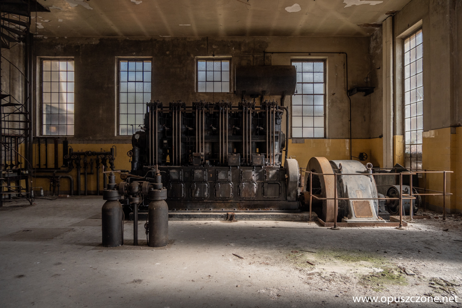 Fabryka w tym miejscu powstała pod koniec XIX wieku. Elektrownię wybudowano kilkanaście lat później wraz z rozwojem zakładu. Energia elektryczna wytwarzana była za pomocą spalinowych silników diesla o dużej mocy. Było jej na tyle dużo że poza zaspokajaniem potrzeb fabryki, zasilała także okoliczne miejscowości. Fabrykę zamknięto ponad 50 lat temu. Pomimo upływu czasu, we wnętrzu tej niezwykłej zakładowej elektrowni, dalej zachwycają oryginalne generatory. Zachowały się w idealnym stanie, jak gdyby wyłączono je kilka lat temu, jednak minęła już połowa wieku od kiedy zamilkły. Przez okna wdziera się bluszcz, którego zielone liście pięknie kontrastują z zimnym industrialnym wnętrzem i czernią silników.