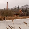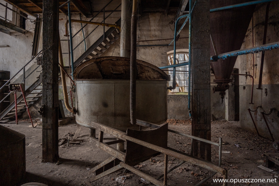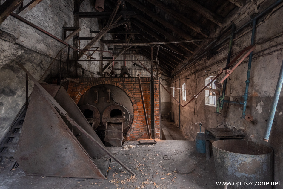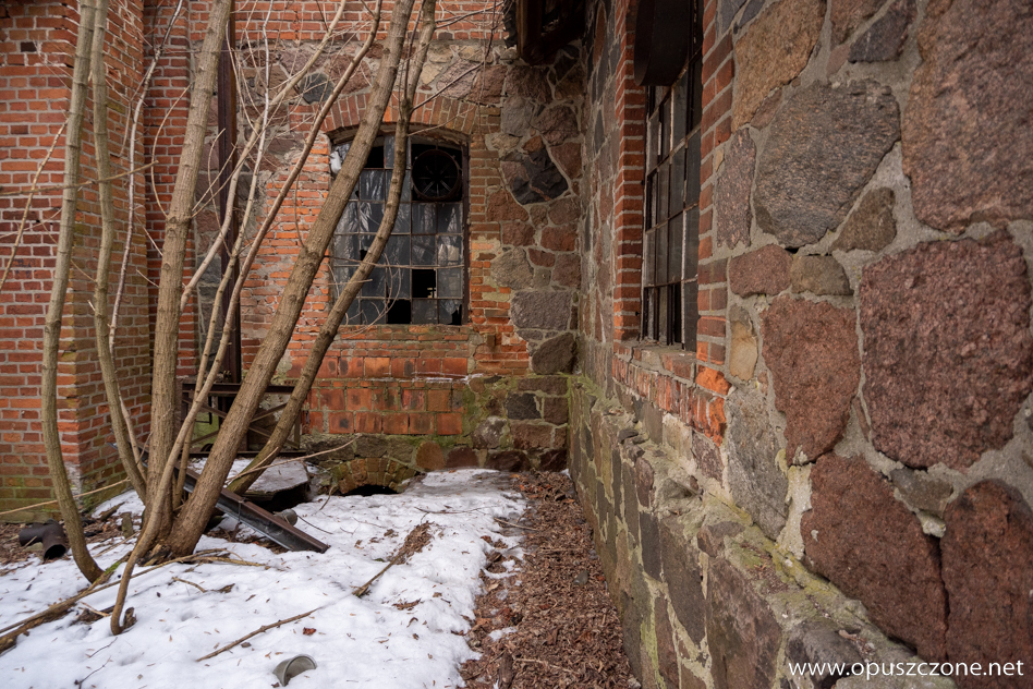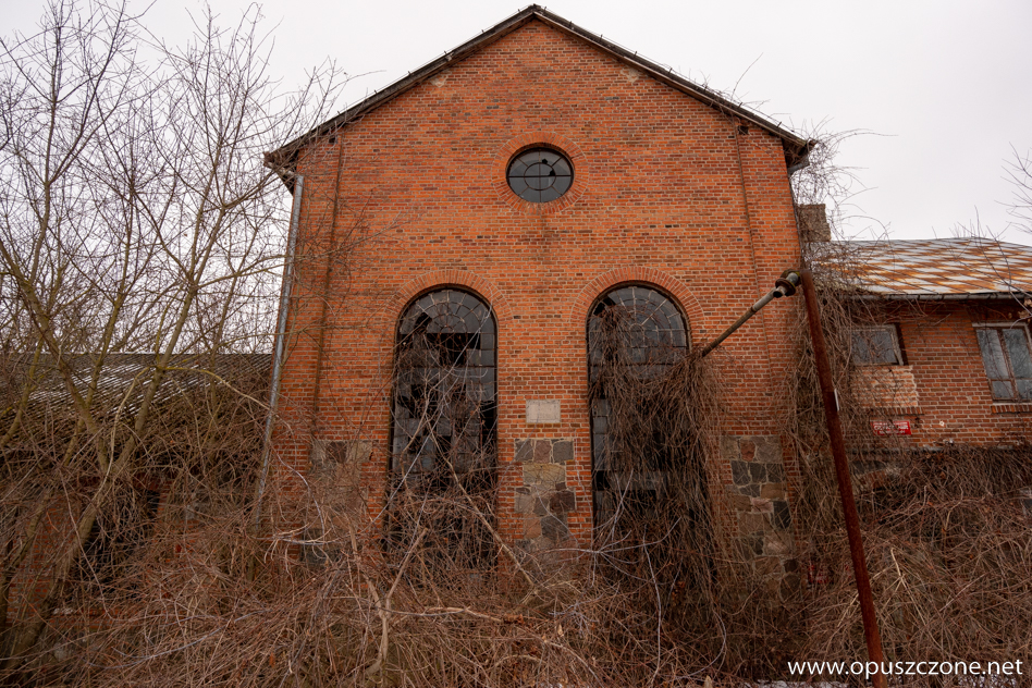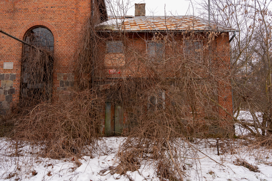 Gorzelnia powstała w 1914 roku. Zimą, gdy teren przykrywa śnieg, a pobliski staw skuwa lód, budynek nabiera jeszcze bardziej surowego charakteru. Masywna bryła z czerwonej cegły, opleciona plątaniną uśpionej na zimę roślinności, wciąż przypomina o dawnej funkcji tego miejsca. Po II wojnie światowej gorzelnia, podobnie jak pobliski pałac i zabudowania folwarczne, została przejęta przez PGR. Z czasem popadła w zapomnienie i zaczęła niszczeć, pozostawiając po sobie jedynie ślad dawnej świetności.