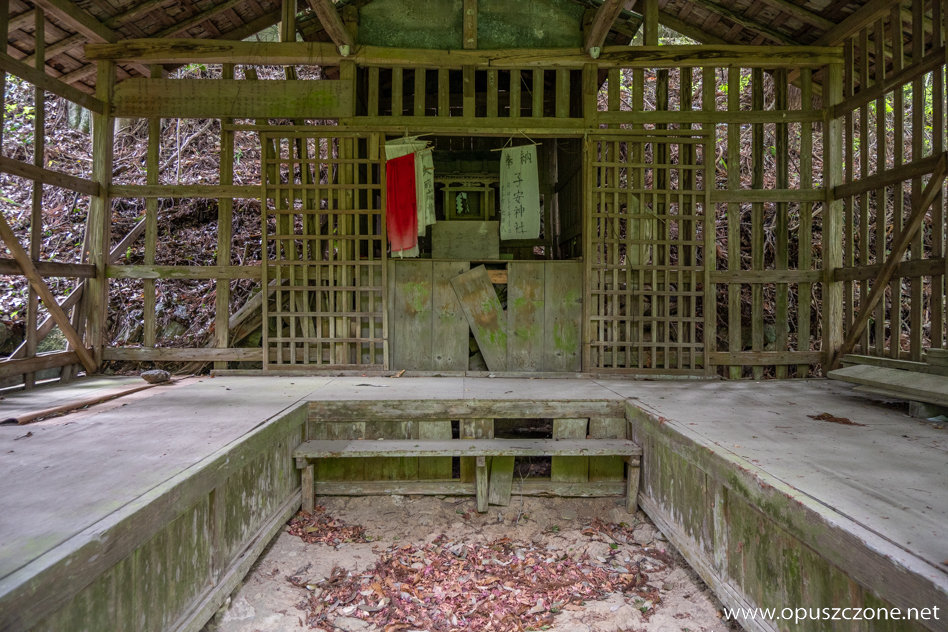 Wśród górskich lasów Japonii kryje się zapomniana świątynia shintō, niemal całkowicie pochłonięta przez naturę. Niegdyś miejsce modlitwy i lokalnych rytuałów, dziś emanuje ciszą i tajemnicą. Drewniana brama torii pokrywa się powoli mchem, a prowadzące do niej strome schody zarastają roślinnością.