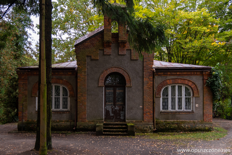 W rozległym parku za szpitalem, wśród drzew, skrywa się zapomniana kaplica. Wzniesiona w 1924 roku wraz z niewielkim cmentarzem, przez lata pełniła także funkcję prosektorium. Dziś, od dawna nieużywana, kaplica powoli poddaje się upływowi czasu – jej mury oplata bluszcz, a kamienne schody porasta mech i przykrywa warstwa jesiennych liści.
